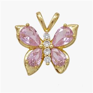 Copper Butterfly Pendant Pvae Zirconia Pink Crystal Glass Gold Plated, approx 16-18mm