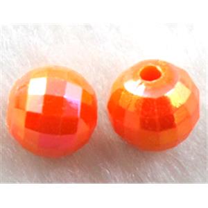 Resin Beads, faceted round, red AB-Color, 8mm dia, approx 3800pcs