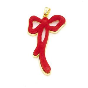 Copper Bowknot Pendant Pave Red Resin Gold Plated, approx 27-47mm