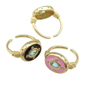 copper Ring with enamel, eye, gold plated, mixed, approx 16mm, 18mm dia