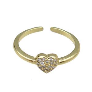 Copper Ring With Boy Heart Pave Zircon Adjustable Gold Plated, approx 6mm, 6-10mm, 18mm dia