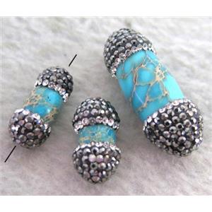 blue Sea Sediment barrel bead paved rhinestone, approx 8-16mm