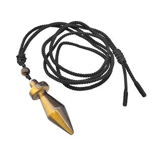 Tiger Eye Stone Pendulum Necklace Black Nylon Rope, approx 14-45mm