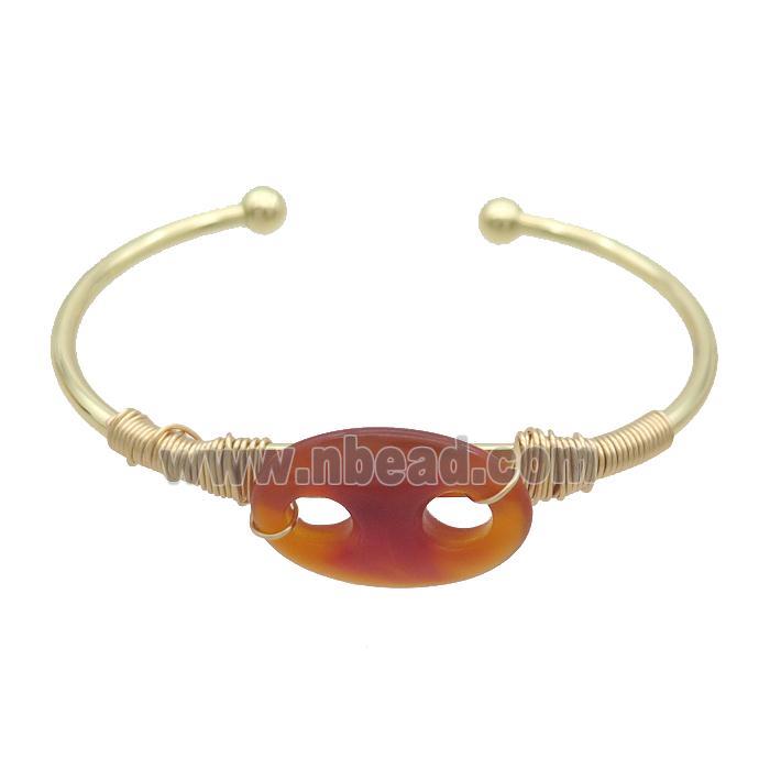 • Copper Bangle With Red Agate Wire Wrapped Gold Plated