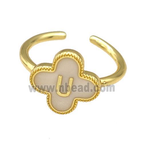 • Copper Clover Rings Letter-U Painted Gold Plated