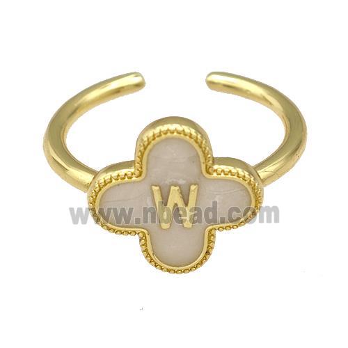 • Copper Clover Rings Letter-W Painted Gold Plated