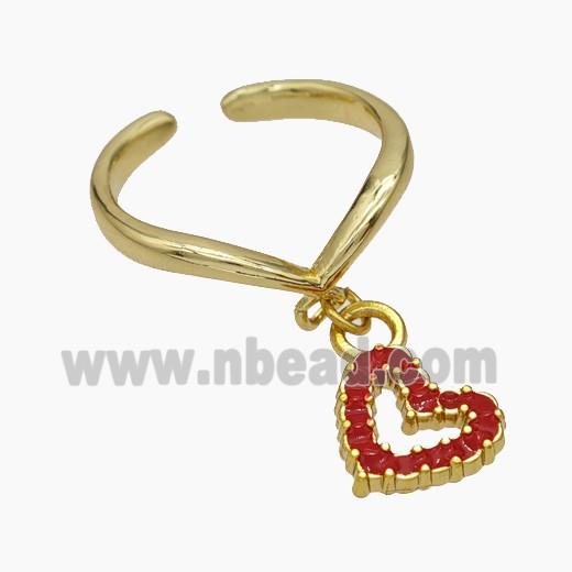 • Copper Heart Rings Red Enamel Gold Plated