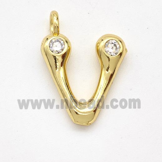 • Copper Letter-V Pendant Pave Zirconia Gold Plated