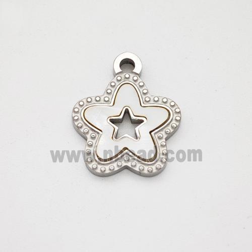 • Raw Stainless Steel Star Pendant Pave Shell Hollow