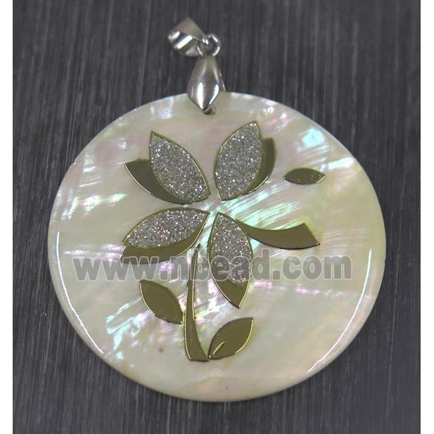 • shell pendant paved druzy quartz